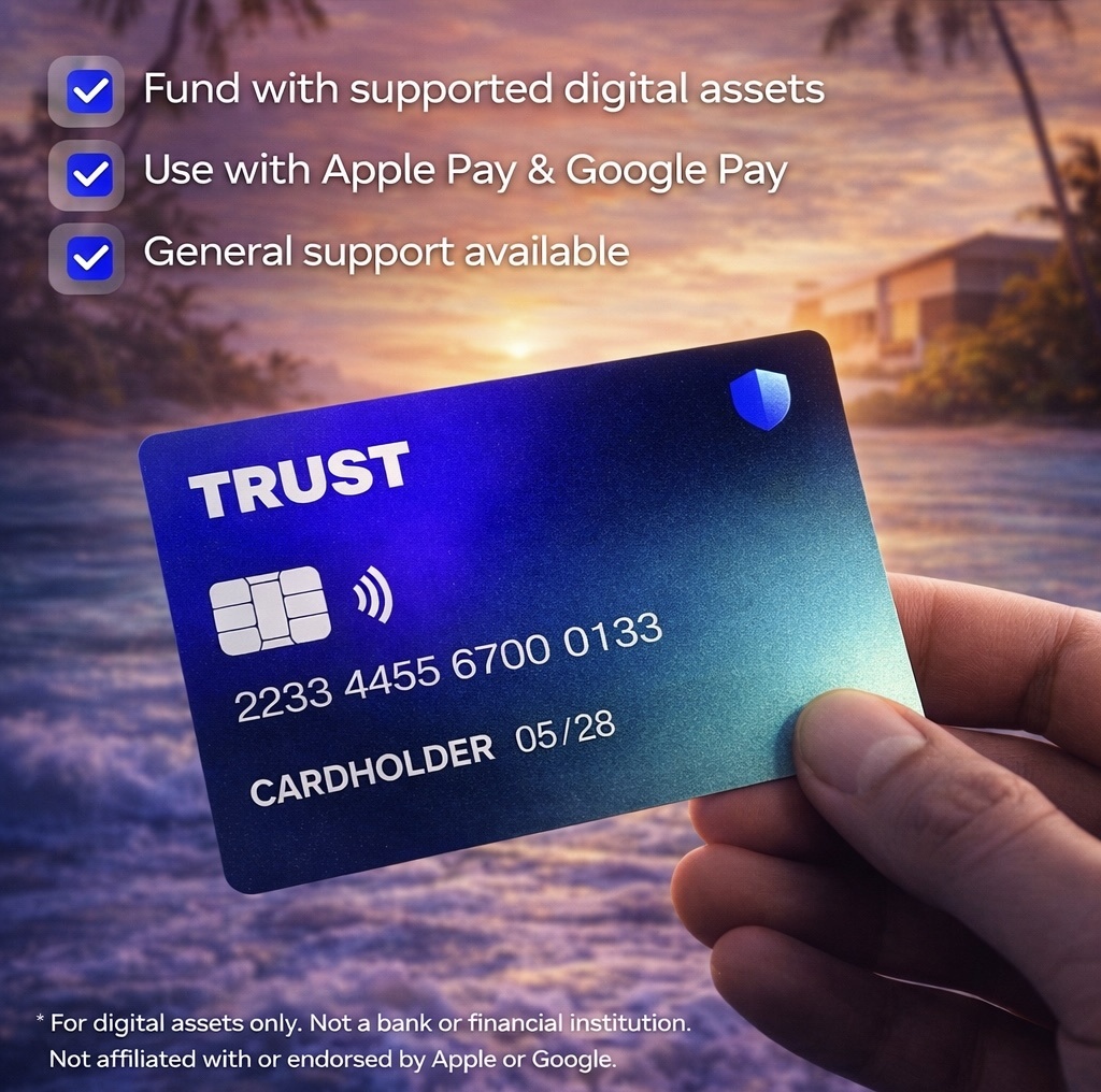 Your TrustWallet card can be used globally anywhere that accepts major credit cards, making it incredibly versatile.